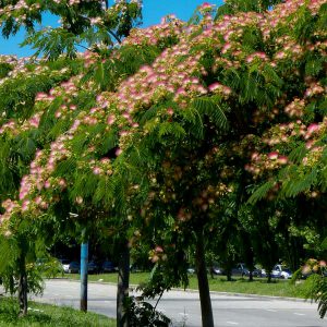 L’Albizia, est aussi appelé Arbre à soie, Acacia de Constantinople ou Mimosa de Constantinople. Originaire d’Asie de l’Est et du Sud, il se plaît aussi dans notre belle région du sud-ouest. C’est un arbre à feuillage caduc, qui arbore en été, un beau feuillage mais surtout une splendide floraison.